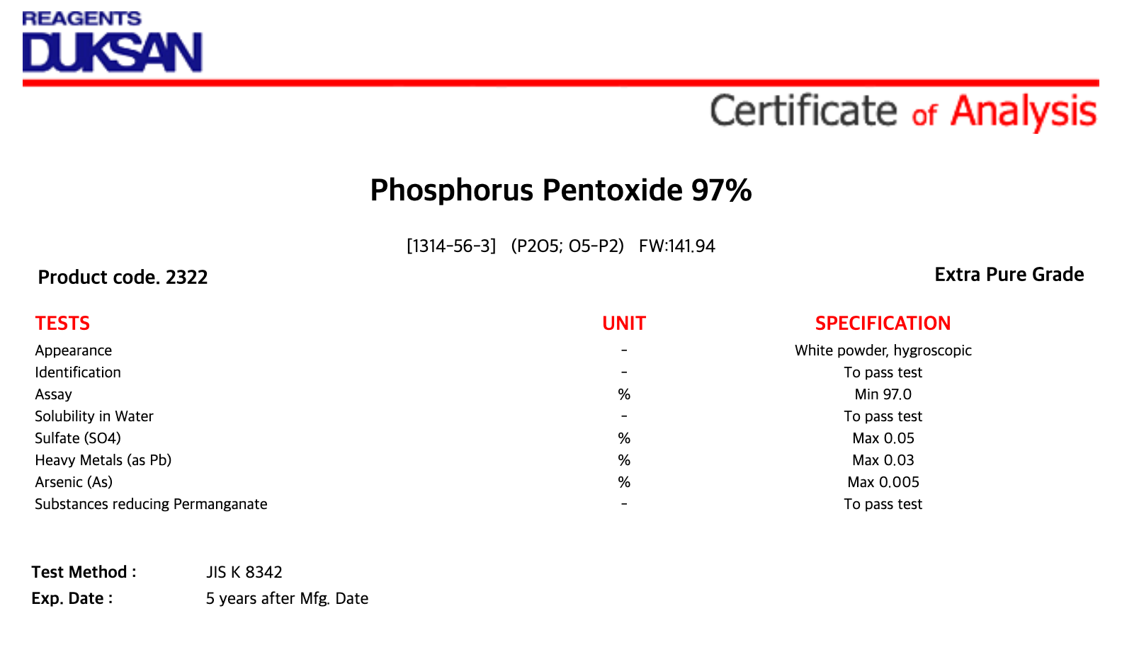 [2322] Phosphorus Pentoxide, Extra Pure, 20 kg, CAS# 1314-56-3 + 330,000원