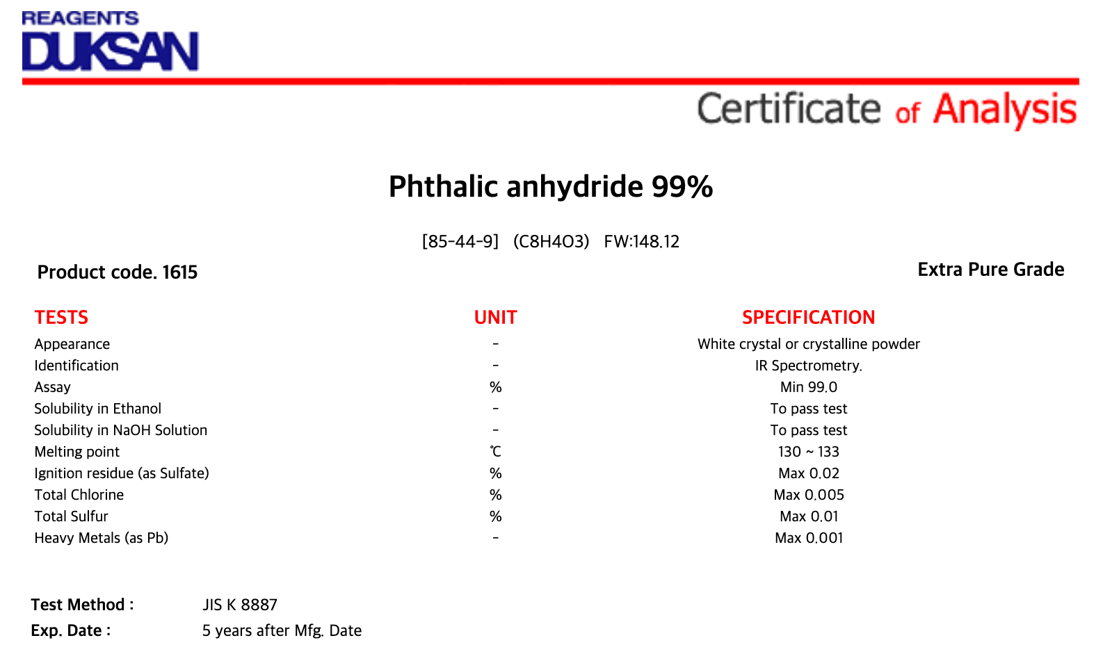 Phthalic acid anhydride; 1,3-Isobenzofurandione; 1,2-Benzenedicarboxylic acid anhydride;