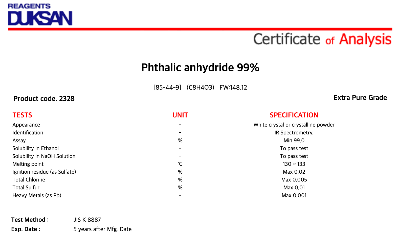 Phthalic acid anhydride; 1,3-Isobenzofurandione; 1,2-Benzenedicarboxylic acid anhydride;