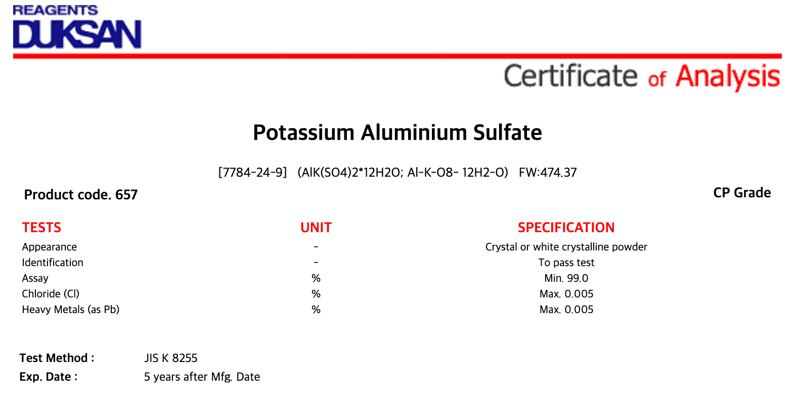 [657] Potassium Aluminium Sulfate, CP, 500 g, CAS# 7784-24-9 + 11,000원