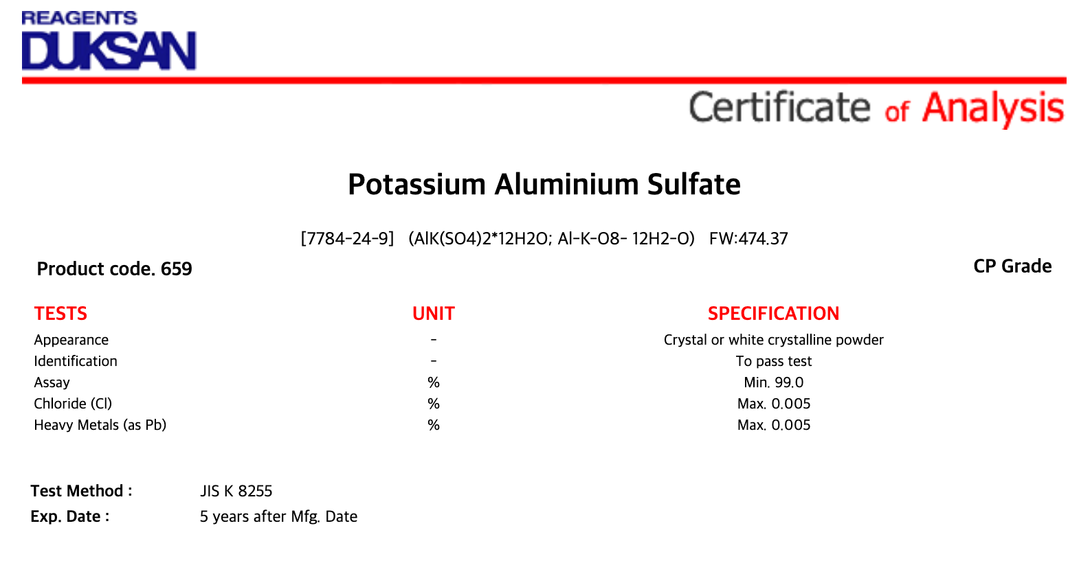 [659] Potassium Aluminium Sulfate, CP, 1 kg, CAS# 7784-24-9 + 12,600원