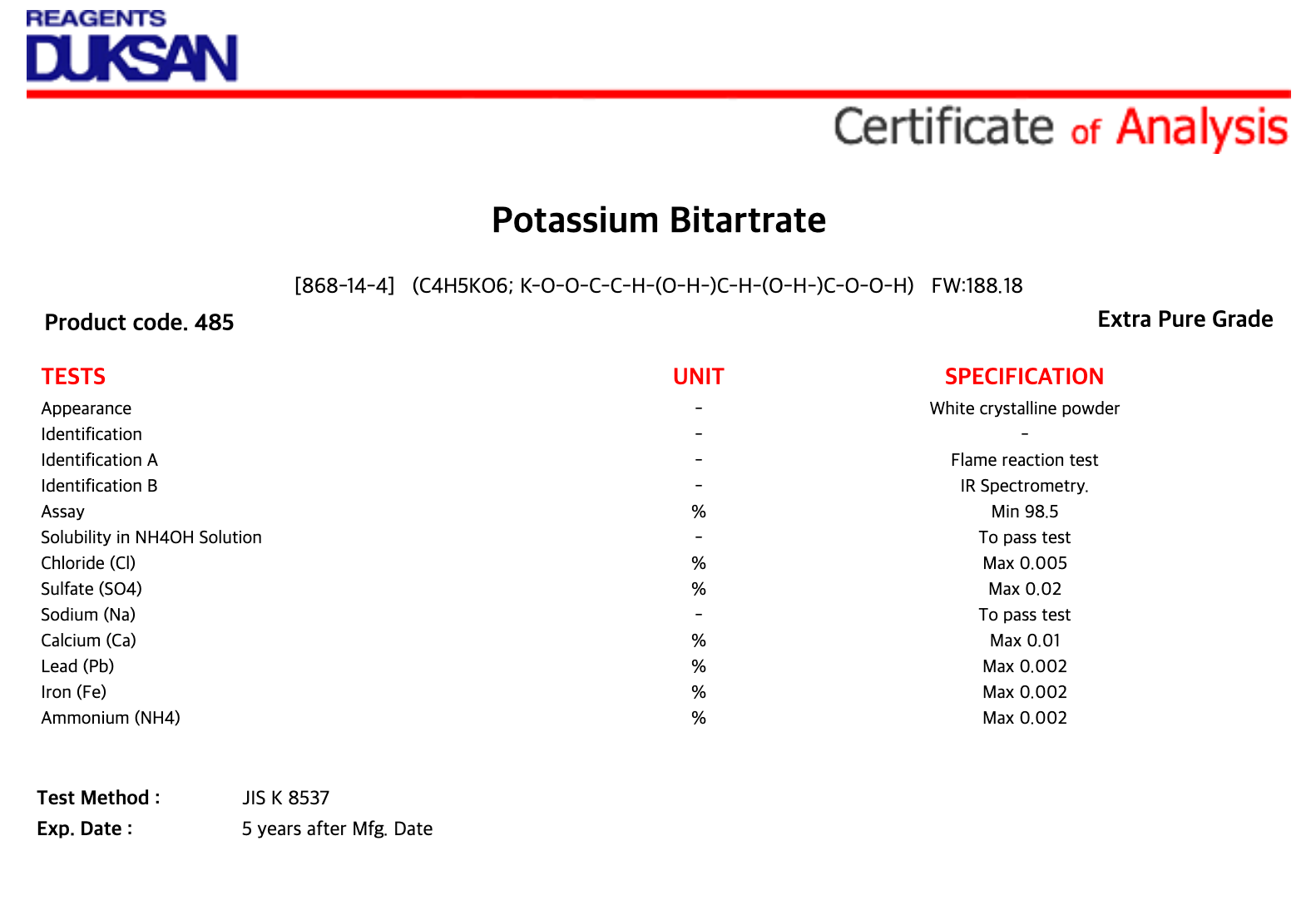 칼륨 타르트르산 (KHC4H4O6)(POTASSIUM TARTRATE (KHC4H4O6));