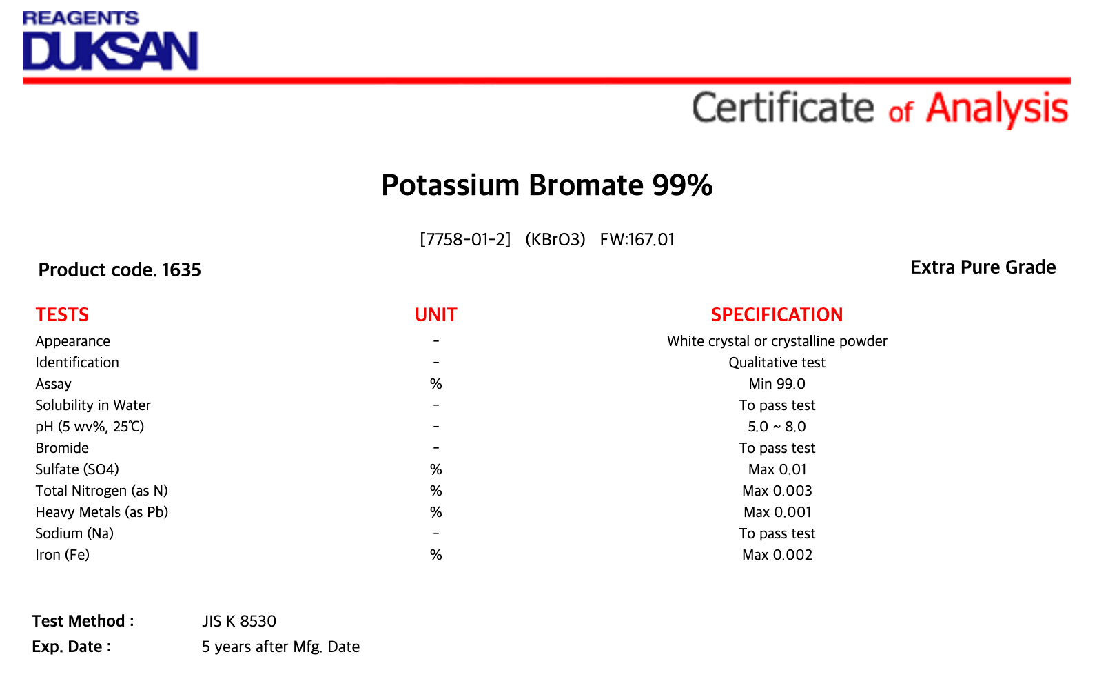 [1635] Potassium Bromate, Extra Pure, 500 g, CAS# 7758-01-2 + 23,600원