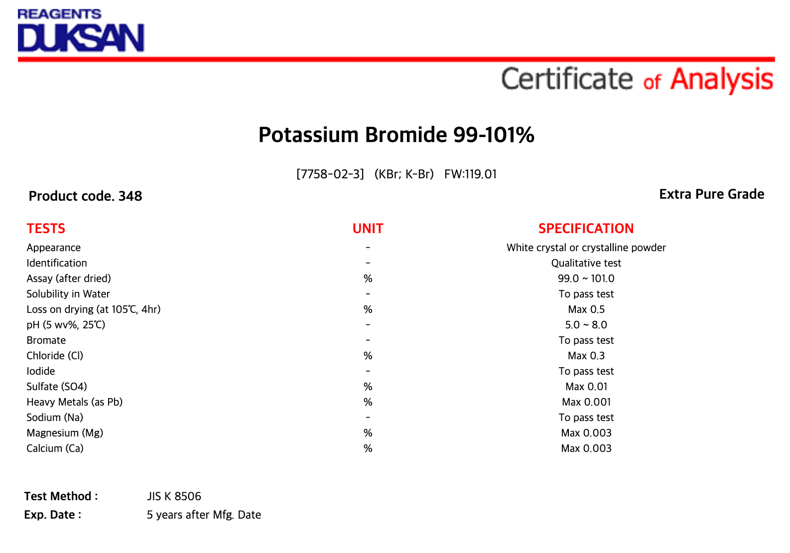 [348] Potassium Bromide, Extra Pure, 1 kg, CAS# 7758-02-3 + 38,500원