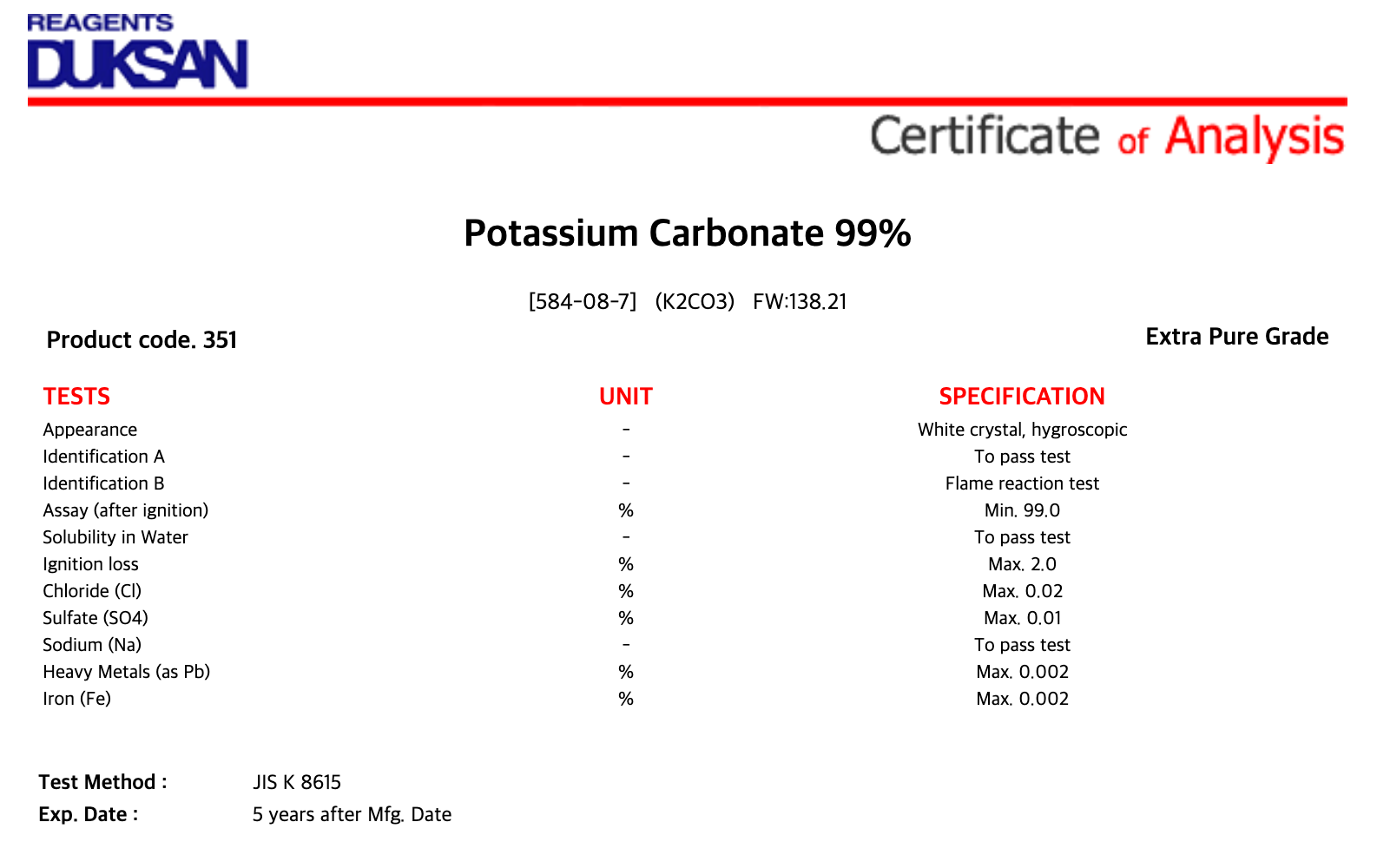Dipotassium carbonate ; Potassium carbonate, anhydrous ; Carbonic acid, dipotassium salt