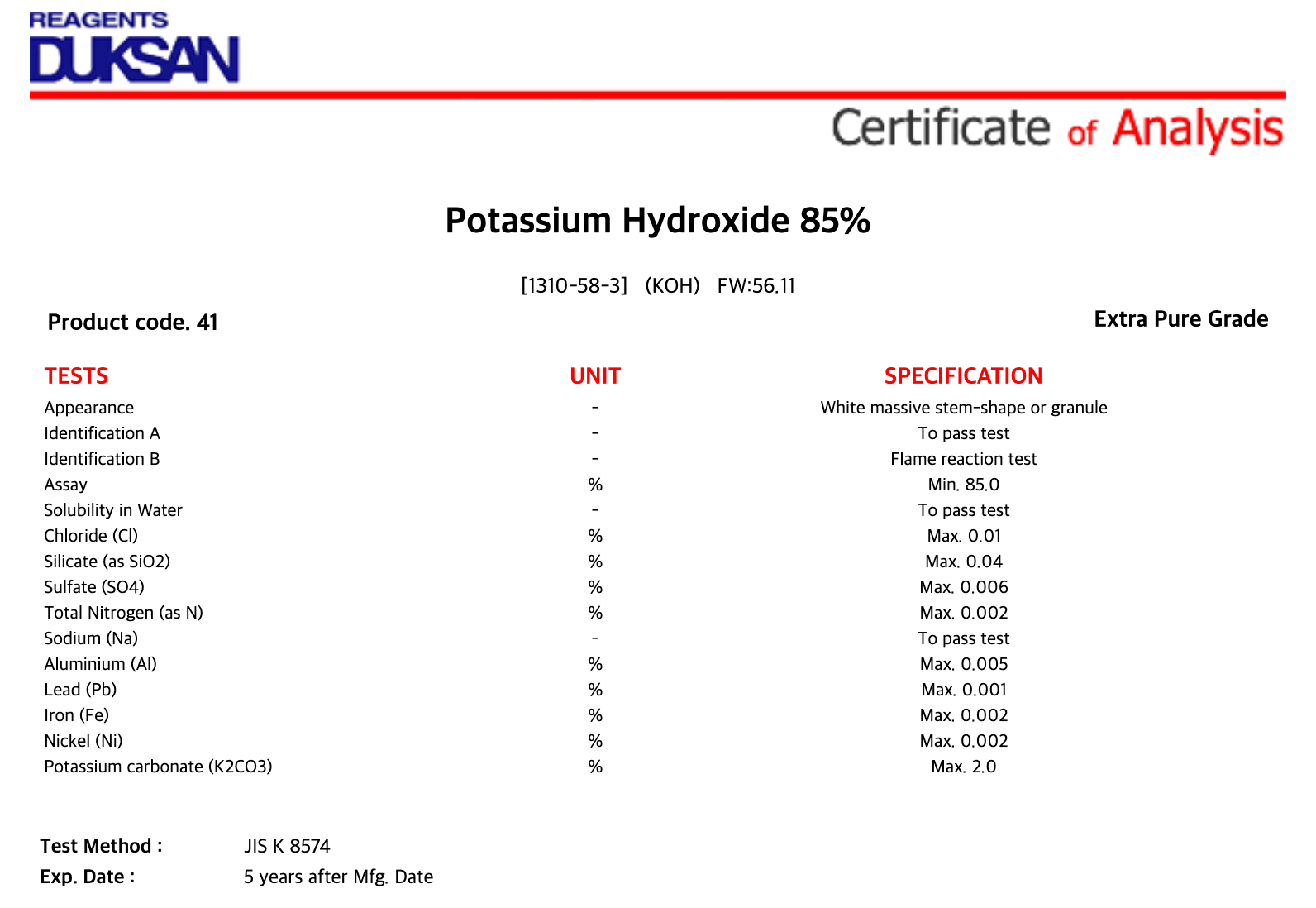 Caustic potash; Potassium hydrate; Potassium hydroxide, dry solid, flake, bead or granule; Potassium lye