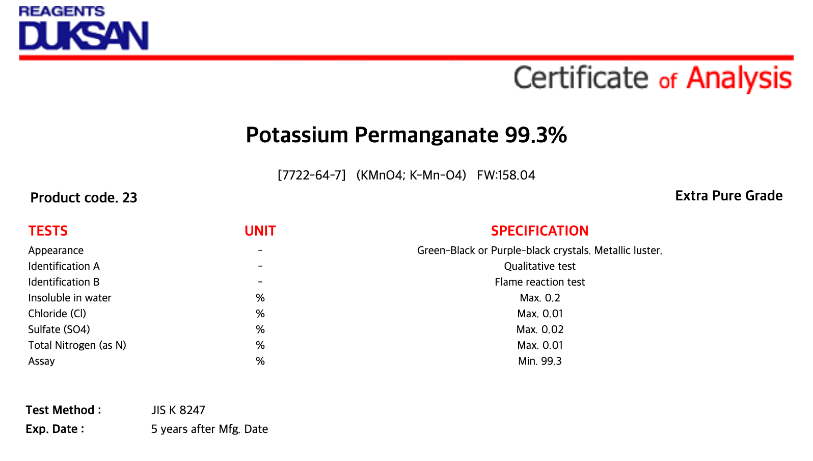 [23] Potassium Permanganate, Extra Pure, 500 g, CAS# 7722-64-7 + 11,100원