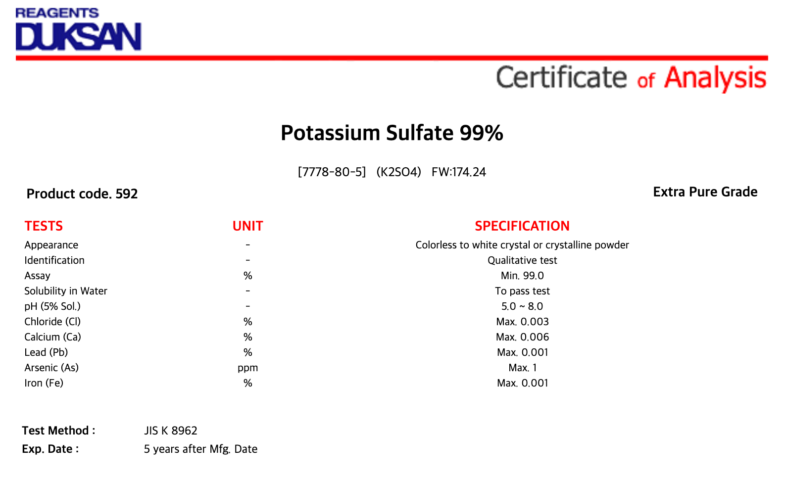 [592] Potassium Sulfate, Extra Pure, 500 g, CAS# 7778-80-5 + 9,600원