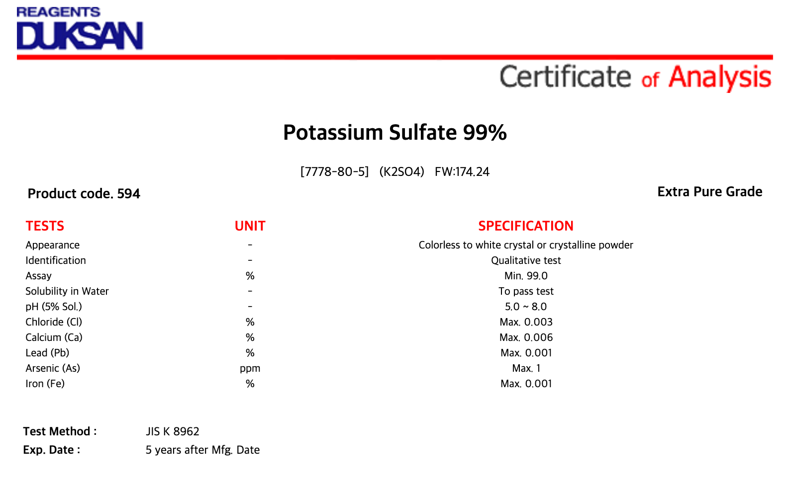 [594] Potassium Sulfate, Extra Pure, 1 kg, CAS# 7778-80-5 + 16,500원