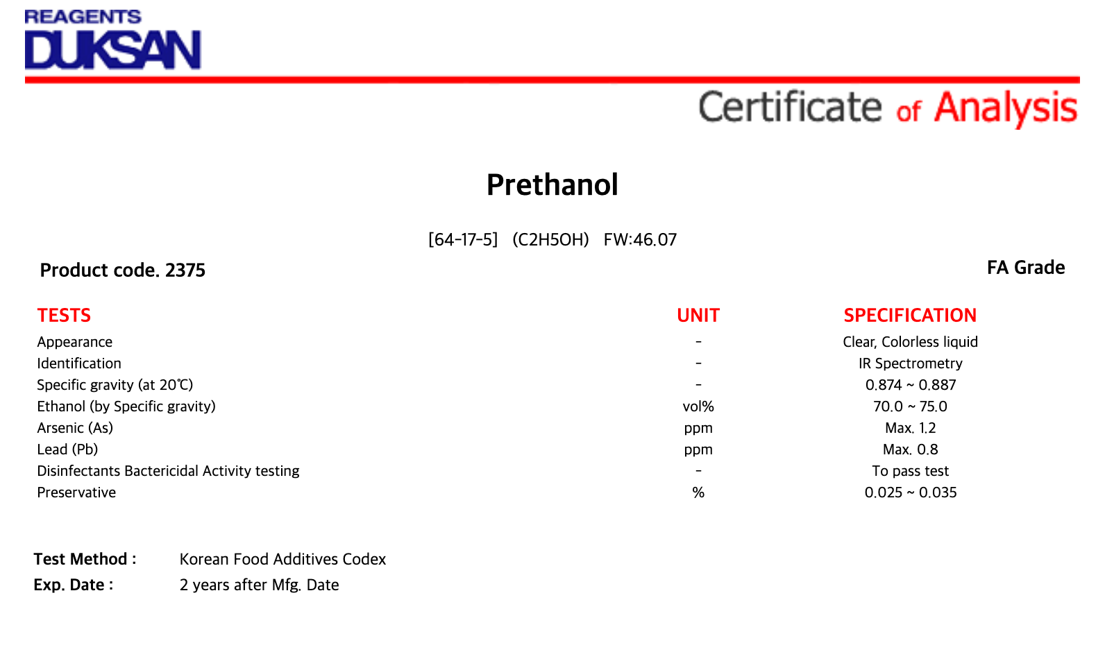 Prethanol, FA, 200 ℓ, CAS# 64-17-5