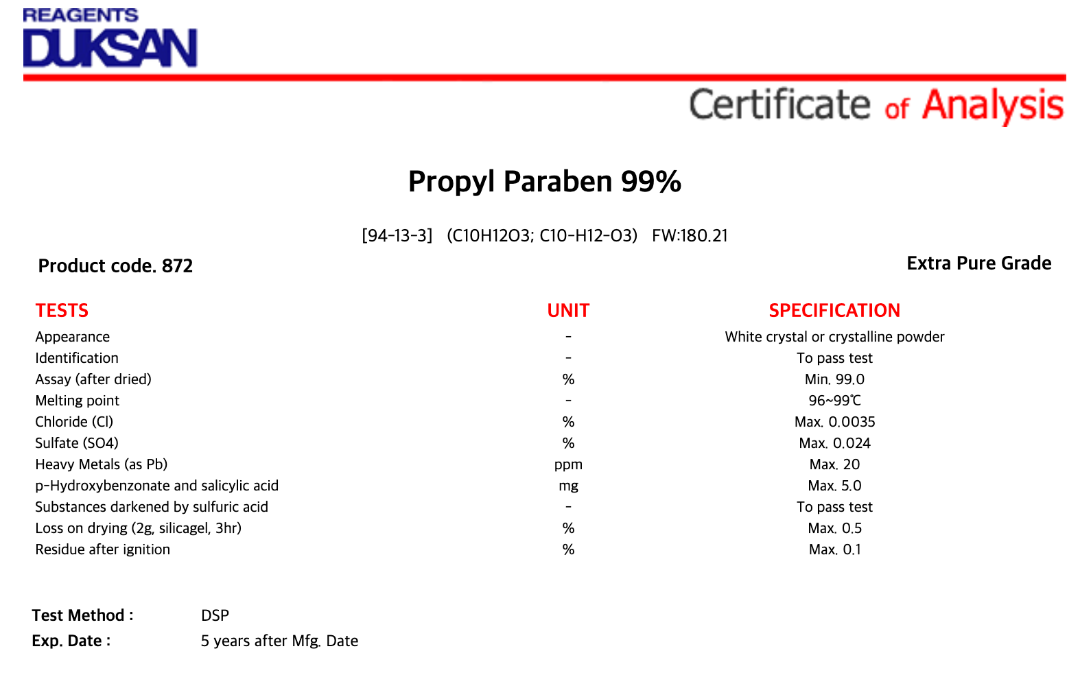 P-히드록시벤조 산, 프로필 에스테르(P-HYDROXYBENZOIC ACID, PROPYL ESTER);