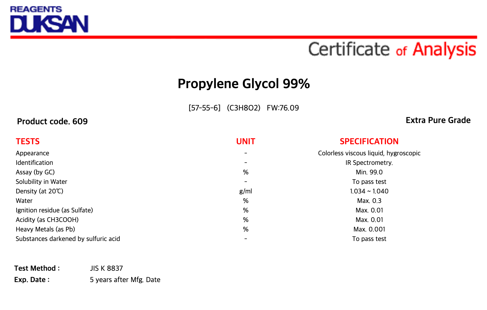 Methylethylene Glycol; Trimethyl Glycol; 1,2-Propylene Glycol; Monopropylene Glycol; Propane -1, 2-diol;