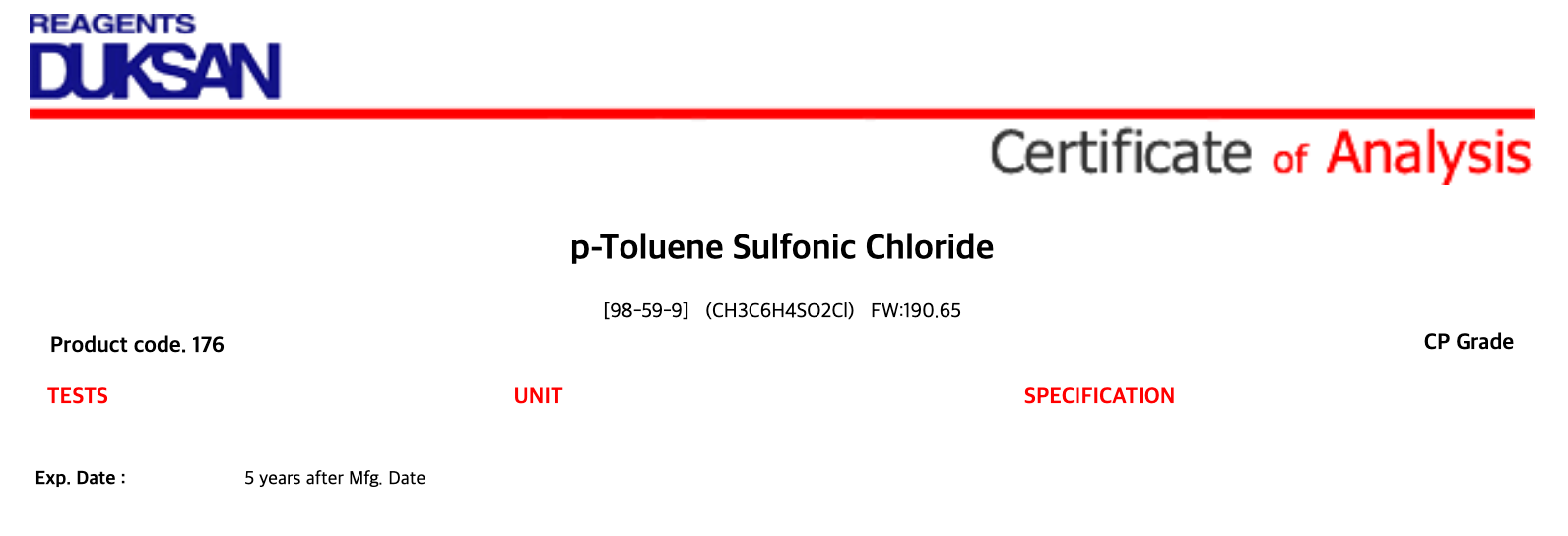 | 품명 : | p-Toluene Sulfonic Chloride |