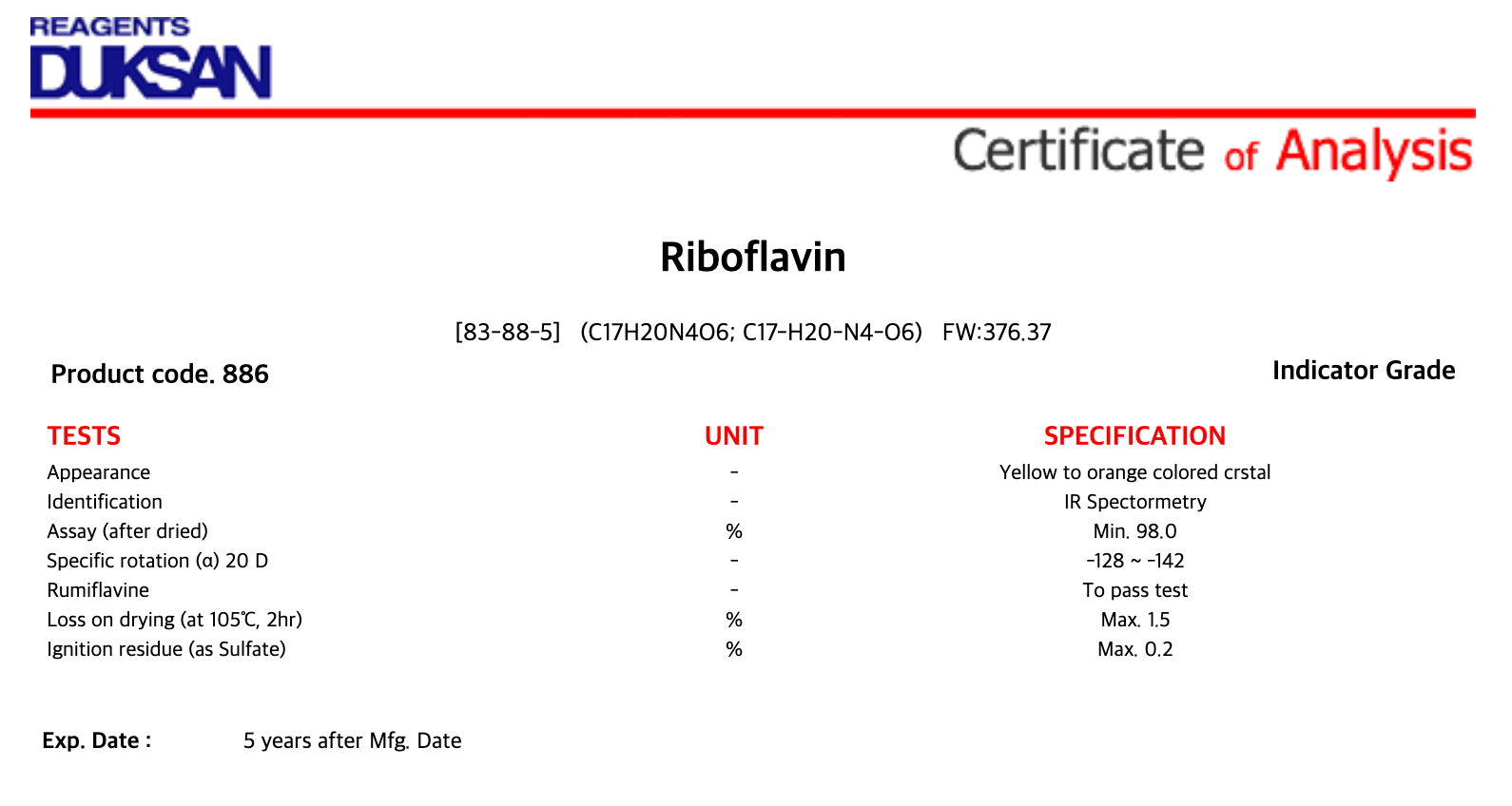 (-)-리보플라빈((-)-RIBOFLAVIN);비타산 B2(VITASAN B2);비타민 G(VITAMIN G);