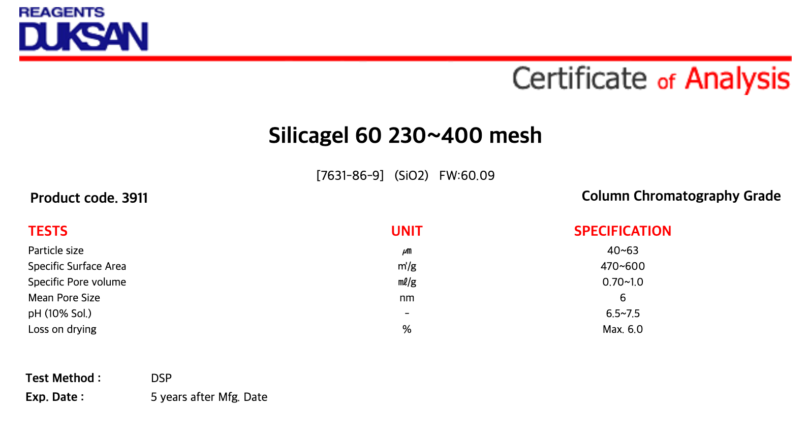 [3911] Silicagel 60 230~400 mesh, Column Chromatography, 25 kg, CAS# 7631-86-9 + 1,650,000원
