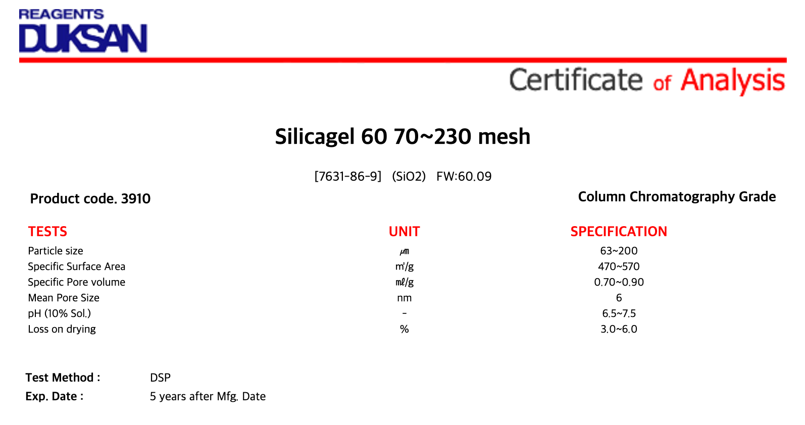 [3910] Silicagel 60 70~230 mesh, Column Chromatography, 1 kg, CAS# 7631-86-9 + 90,700원