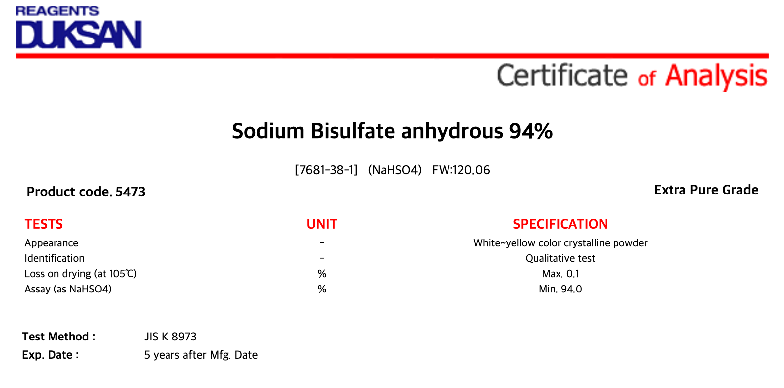 [5473] Sodium Bisulfate anhydrous, Extra Pure, 25 kg, CAS# 7681-38-1 + 189,000원