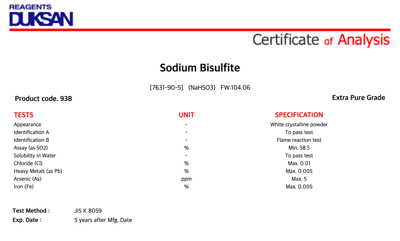 [938] Sodium Bisulfite, Extra Pure, 500 g, CAS# 7631-90-5  + 7,400원