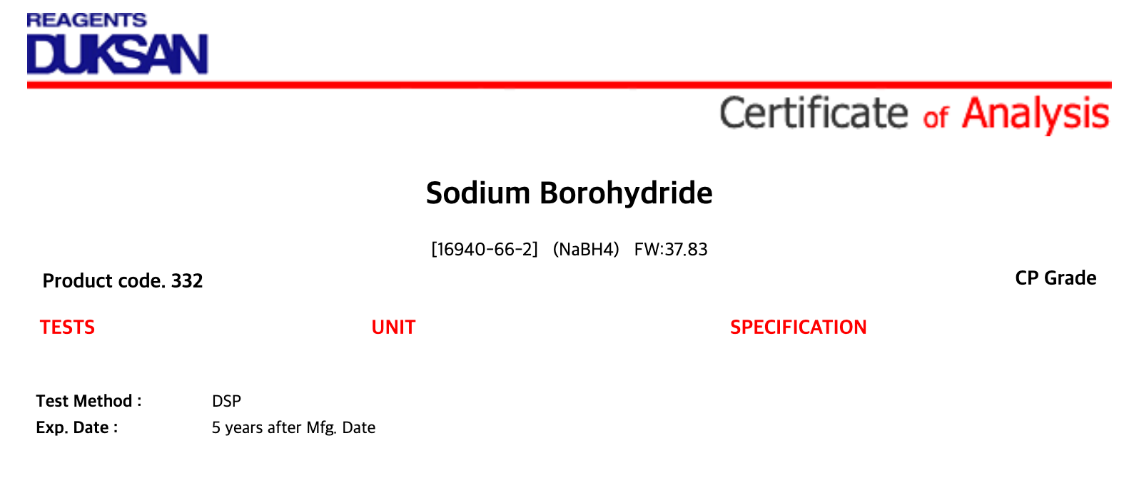 332 1. Sodium Borohydride, CP, 25 g, CAS# 16940-66-2 1/EA 소비자가 : 17,600원