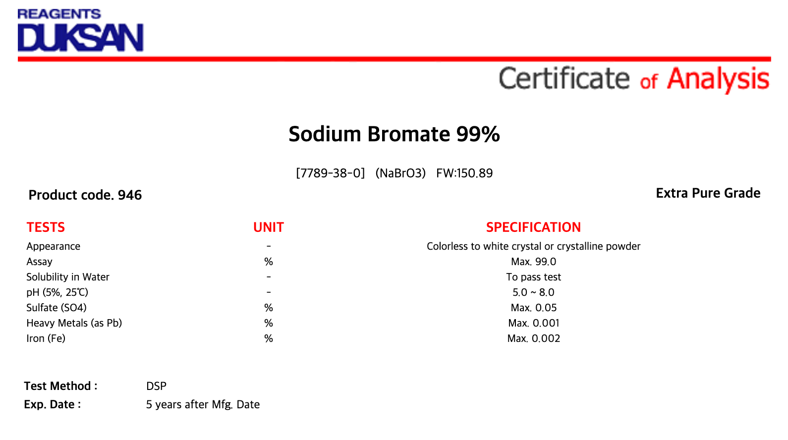 [946] Sodium Bromate, Extra Pure, 500 g, CAS# 7789-38-0 + 14,300원