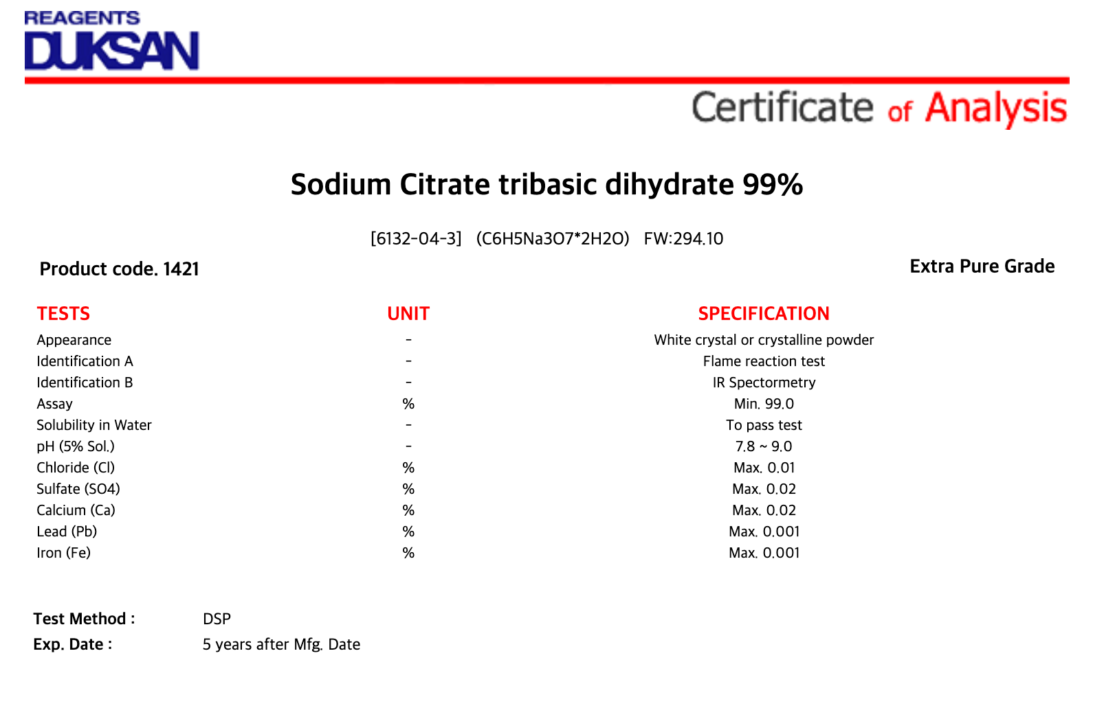 | 품질 규격 : | Extra Pure |