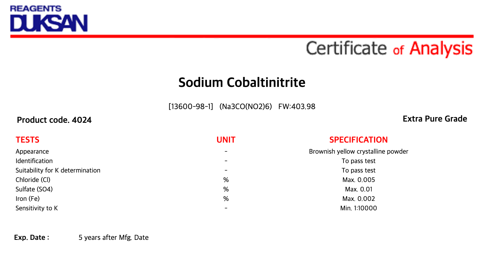 [4024] Sodium Cobaltinitrite, Extra Pure, 500 g, CAS# 13600-98-1 + 145,200원