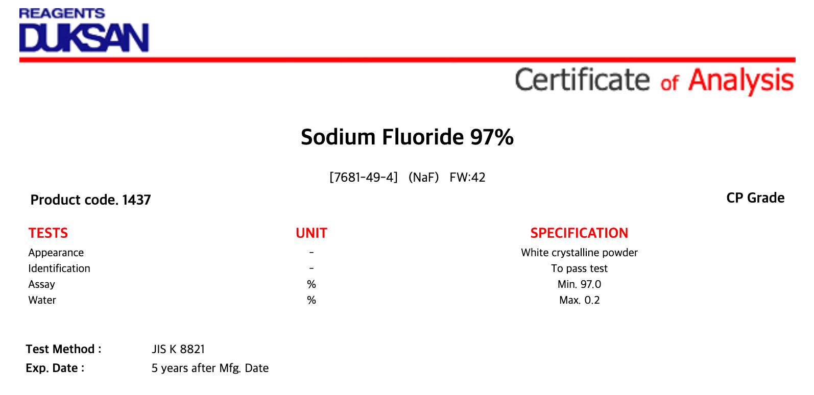 [1437] Sodium Fluoride, CP, 500 g, CAS# 7681-49-4 + 14,400원