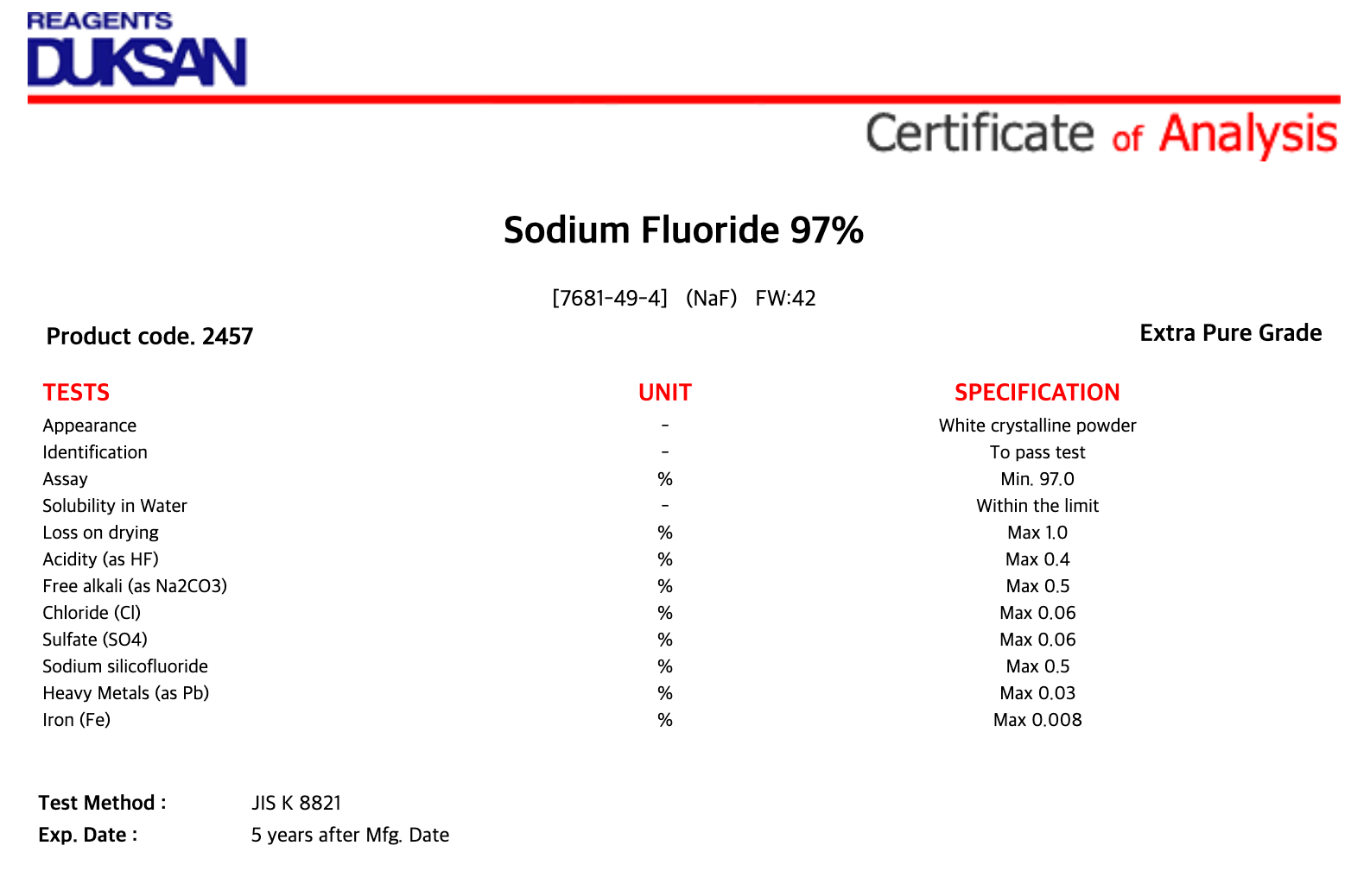 [2457] Sodium Fluoride, Extra Pure, 500 g, CAS# 7681-49-4 + 14,400원