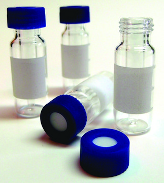 Certified Kits, screw thread vials, 12 x 32 mm, 9 mm thread, unassembled, pkg of 100 volume 2 mL, clear glass vial (with graduated marking spot), PTFE/silicone septum (bonded to cap)
