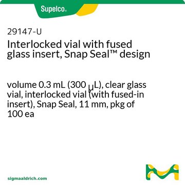 Interlocked vial with fused glass insert, Snap Seal™ design volume 0.3 mL (300 μL), clear glass vial, interlocked vial (with fused-in insert), Snap Seal, 11 mm, pkg of 100 ea