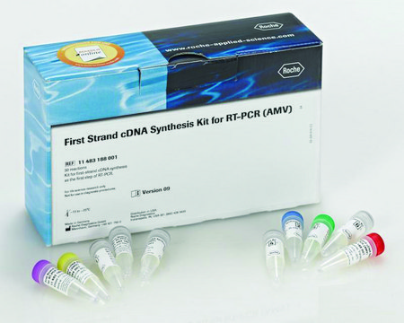 First Strand cDNA Synthesis Kit for RT-PCR (AMV) sufficient for 30 reactions (including 5 control reactions), kit of 1 (10 components), suitable for RT-PCR, hotstart: no, dNTPs included